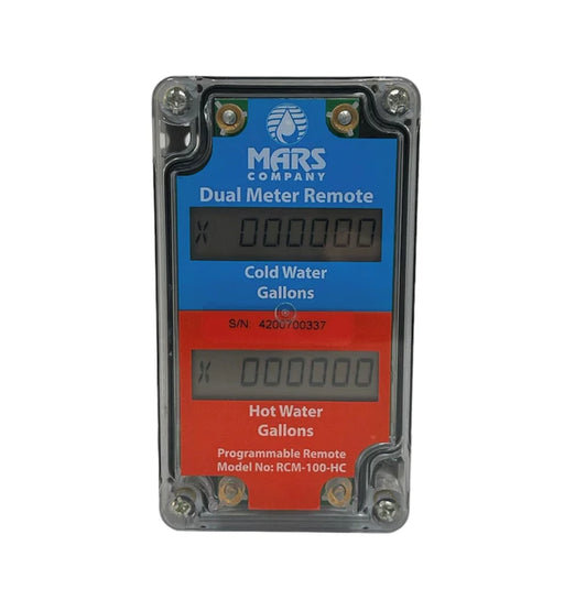 The Mars Company RCM 100CH dual remote display is hardwired from a pulse output from the hot or cold water meter. The display is powered by a 3.6V ...